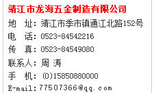 地 址:靖江市季市鎮季市村通江北路152號  電 話:0523-84542216  傳 真:0523-84549080  E-mail:77507366@qq.com